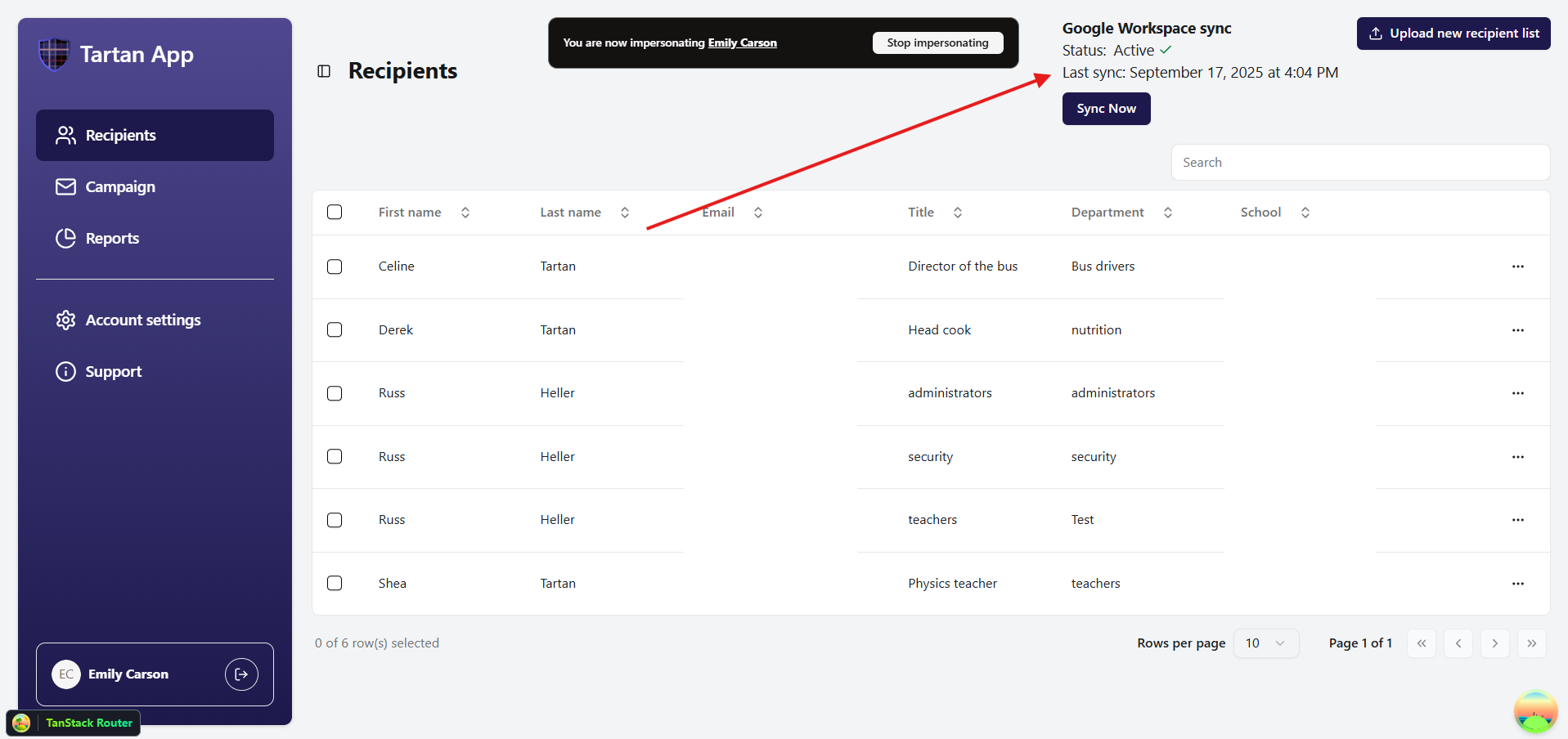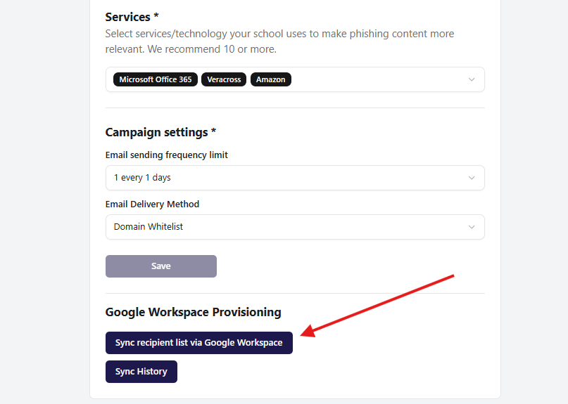 - Click Sync recipient list via Google Workspace.