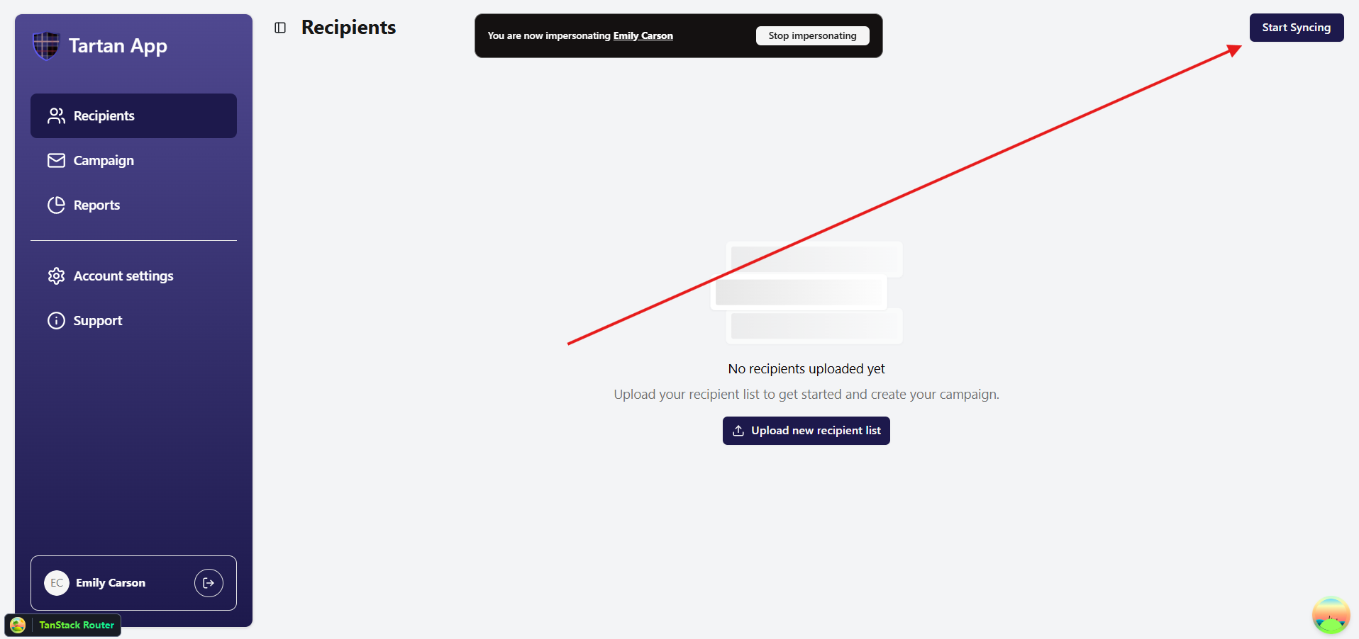 - Once connected, click Start Syncing on the Recipients page or in Account Settings.