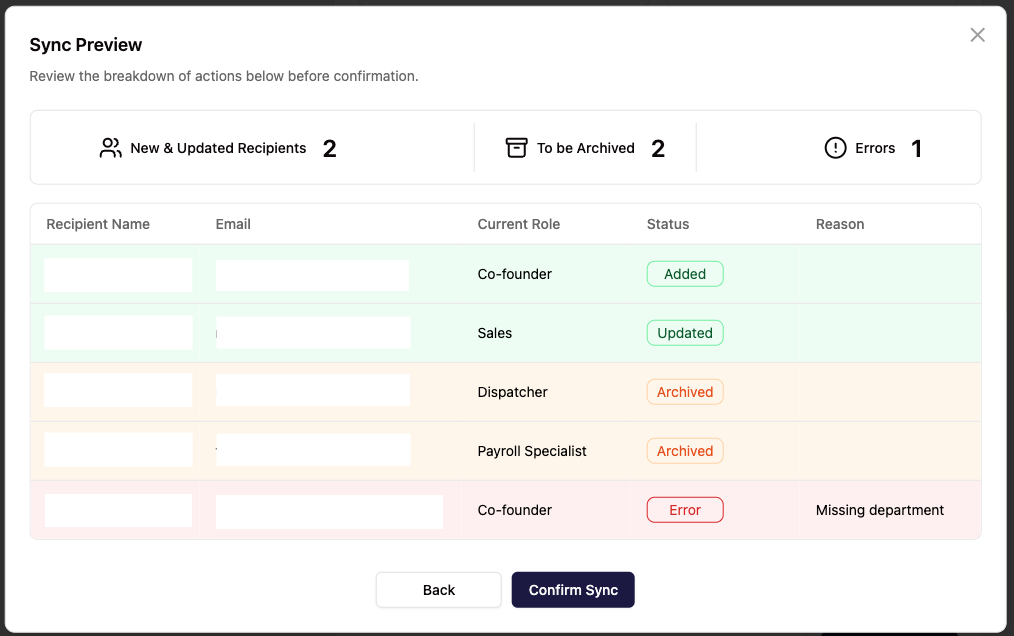 - Users with errors will appear in a separate section and won't be synced.