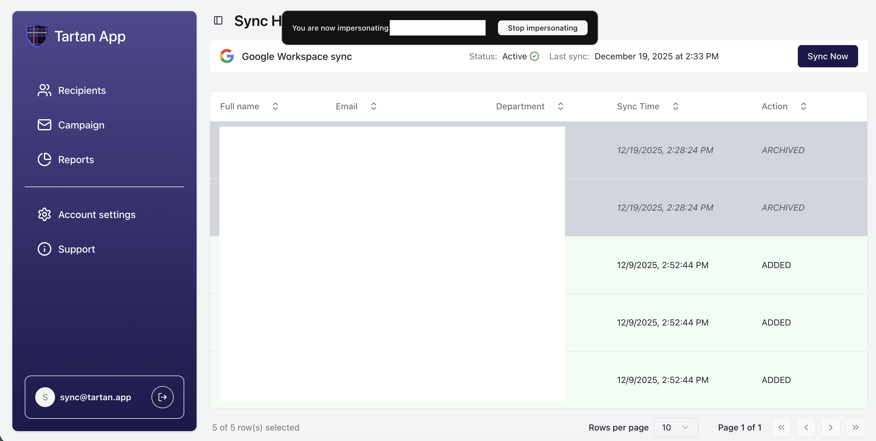 Google Workspace directory synchronization allows you to automatically sync users from Google Workspace into Tartan. This ensures your Tartan recipient list stays up-to-date without manual CSV uploads.